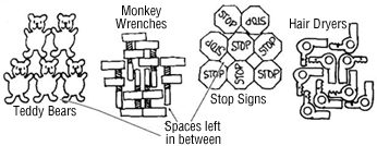 The technical term for a shape which can be Shmuzzled is "Tessellation Shape." Most things are not Tessellation shapes because no matter how you put them together, there are spaces left in between.